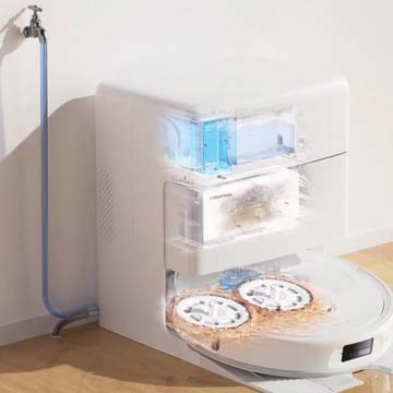 - ایستگاه شارژ هوشمند: شستشو با آب داغ، خشککن هوای گرم، جمعآوری خودکار گرد و غبار
